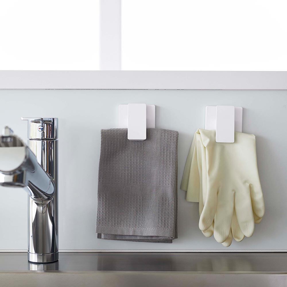 フィルムフック ワイドクリップ ミスト 2個組 山崎実業 MIST 5955 ホワイト 白 タオル 歯磨き粉 布巾 チューブ容器 壁面収納 yamazaki