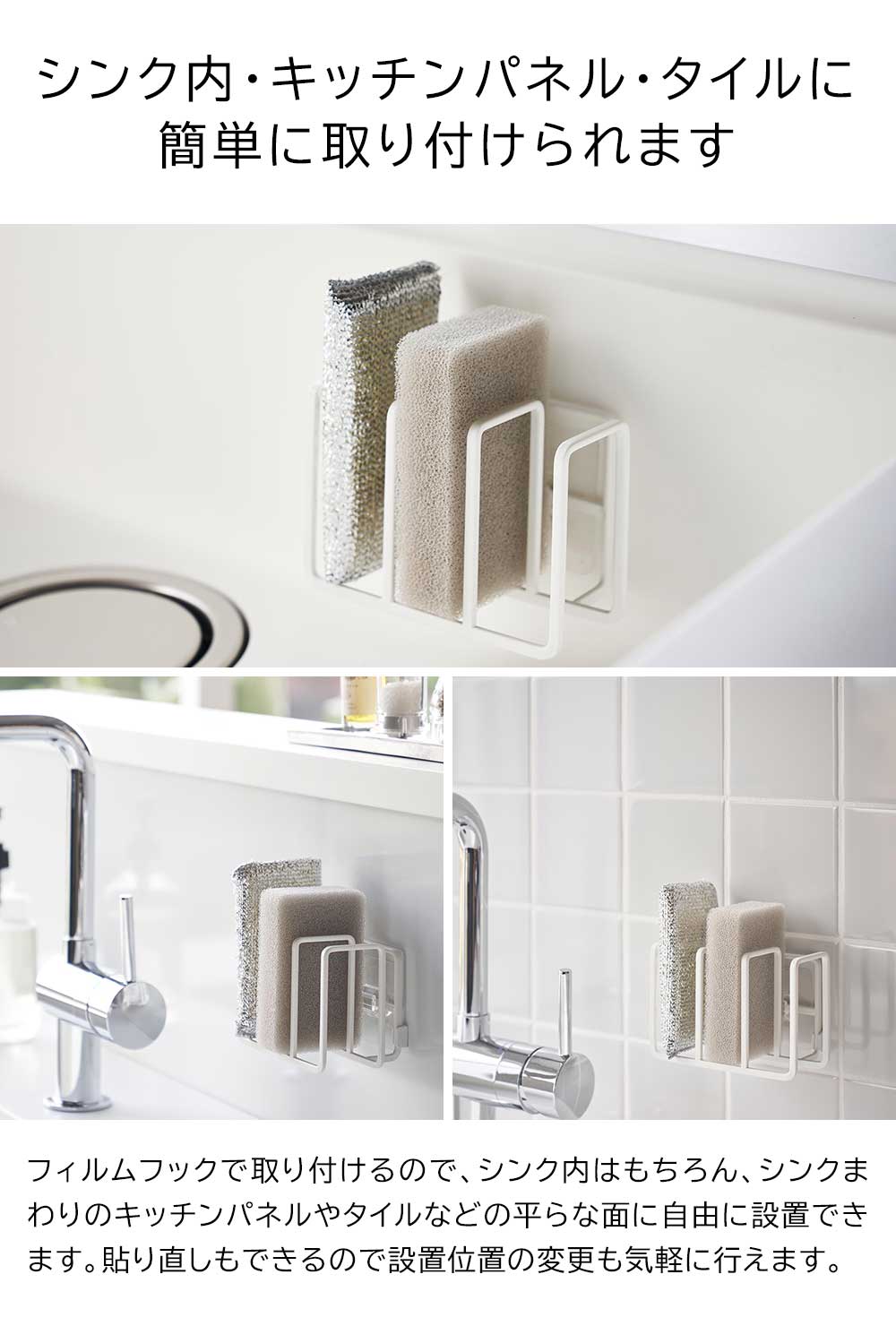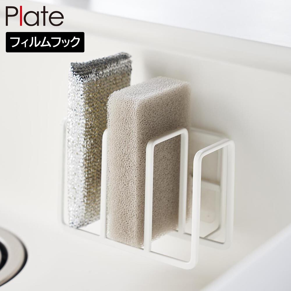 フィルムフックスポンジホルダー プレート 3連 山崎実業 plate ホワイト 3086 白 シンプル yamazaki