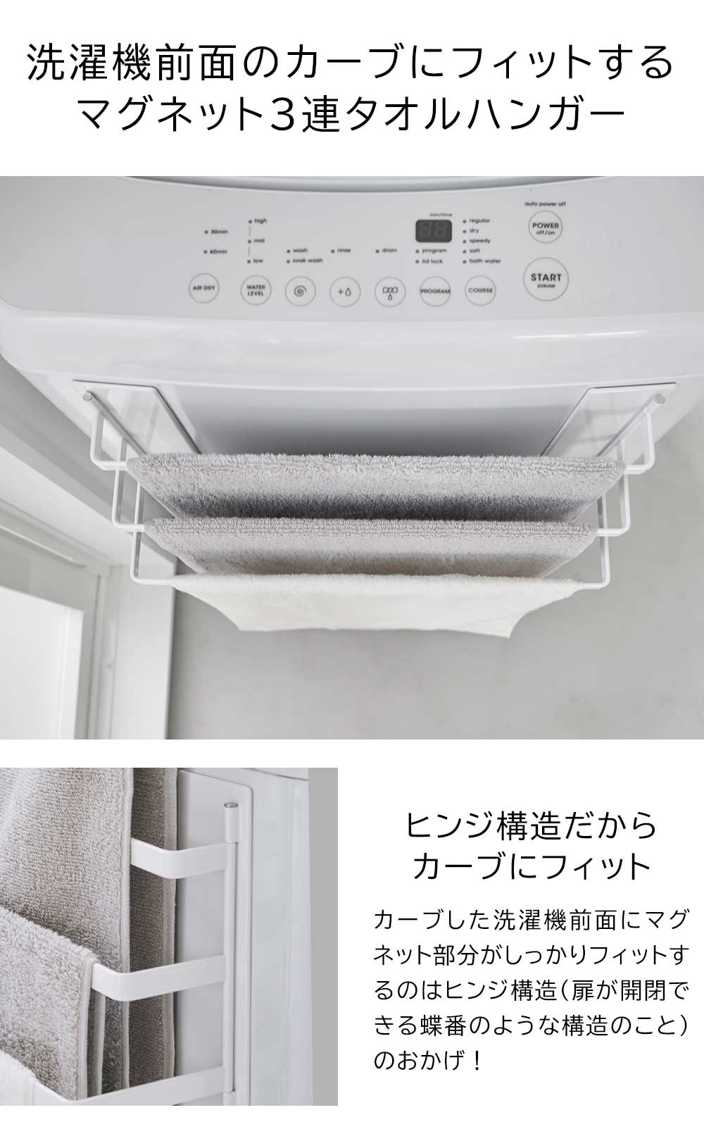 洗濯機前マグネットタオルハンガー タワー 3連 山崎実業 tower ホワイト ブラック 3796 3797 タワーシリーズ yamazaki