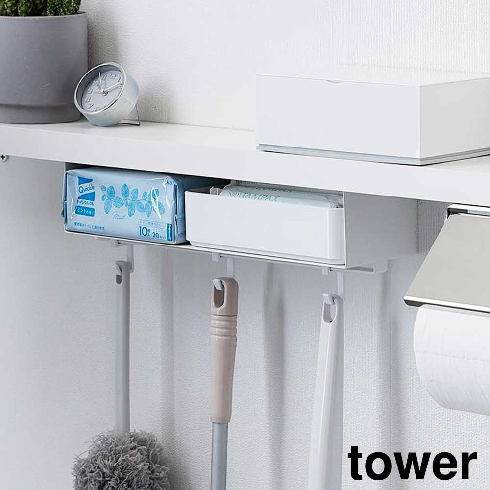 トイレ棚下収納ラック タワー 山崎実業 tower ホワイト ブラック 3758 3759 トイレ収納 フック タワーシリーズ yamazaki