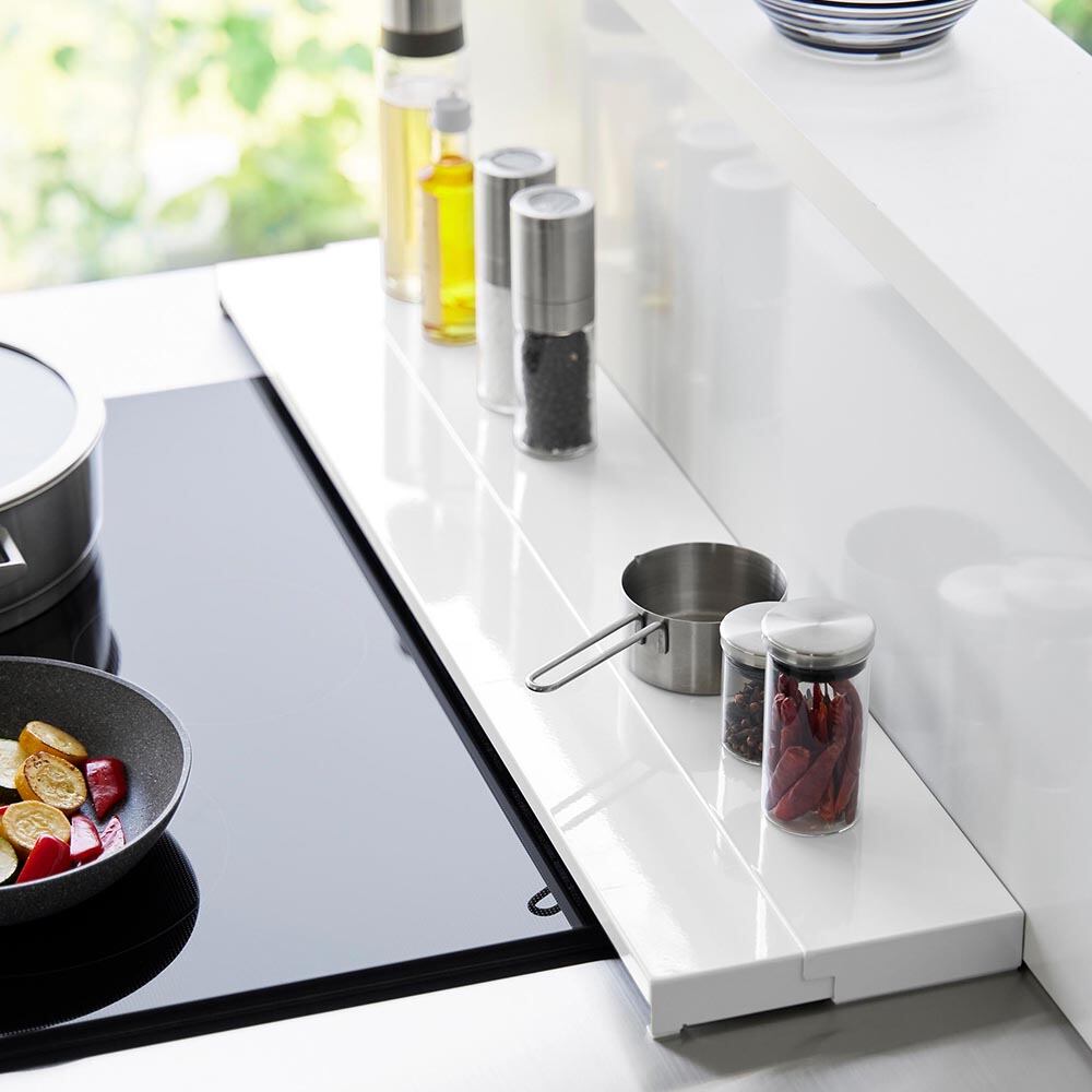 奥行伸縮排気口カバー タワー 75cmコンロ用 山崎実業 tower 幅75cm 奥行10~16.5cm ホワイト ブラック 4564 4565 グリルカバー コンロ奥ラック 白 黒 yamazaki タワーシリーズ