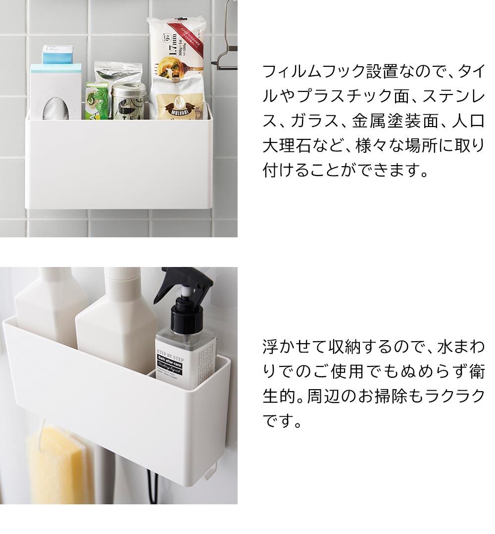 フィルムフックストレージボックス プレート ワイド 山崎実業 plate ホワイト 2127 小物収納 小物入れ 壁面収納 yamazaki