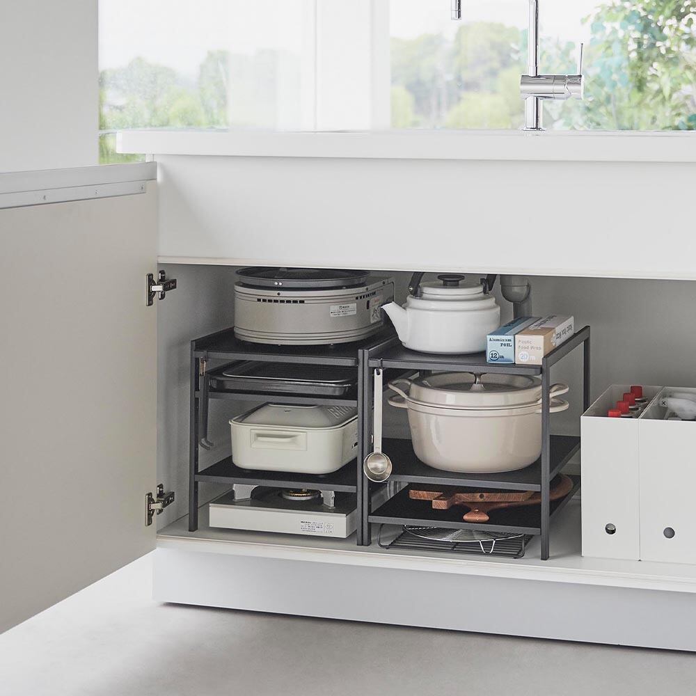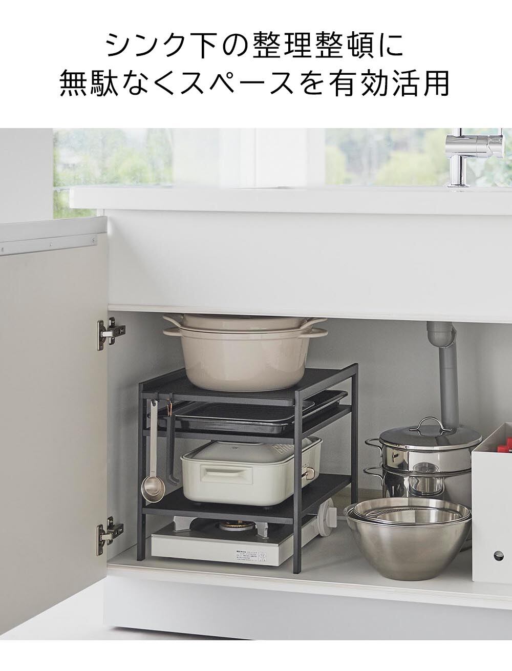 【山崎実業 tower】高さ調節シンク下ラック3段/収納棚/キッチン/タワーシリーズ/yamazaki/ホワイト2011/ブラック2012