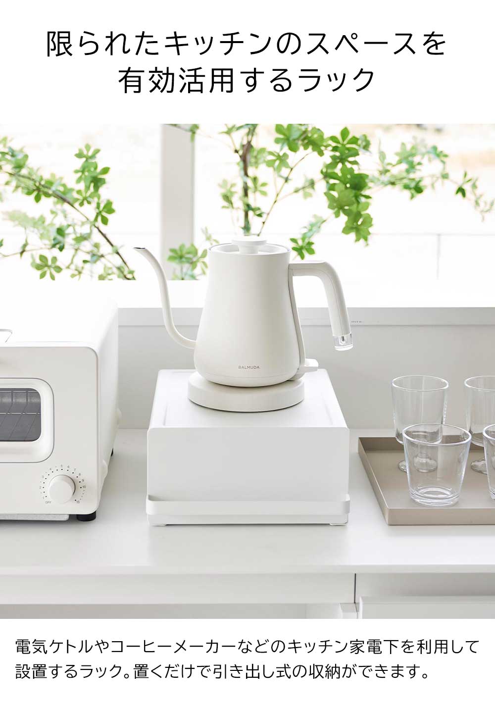 引き出し付きキッチン家電下ラック タワー 山崎実業 tower ホワイト ブラック 2018 2019 スライド 収納 ラック タワーシリーズ yamazaki