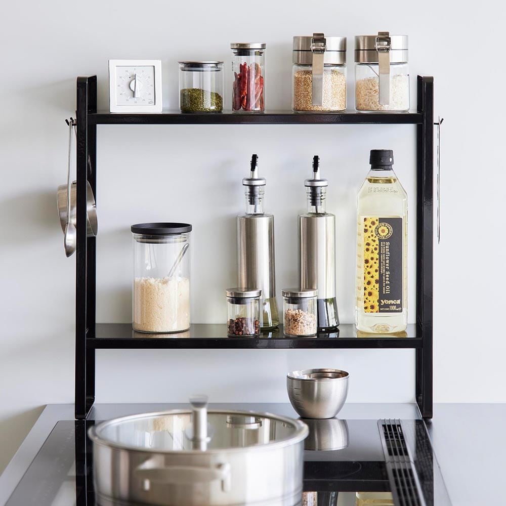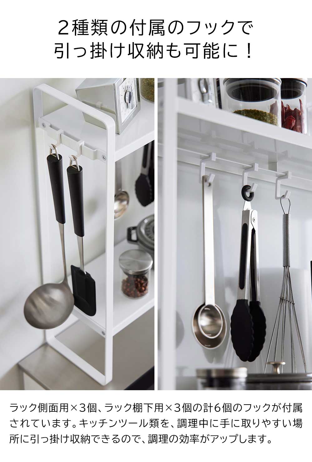 下が拭けるコンロ横ラック タワー 2段 山崎実業 tower ホワイト ブラック 1991 1992 キッチン収納 白 黒 yamazaki タワーシリーズ