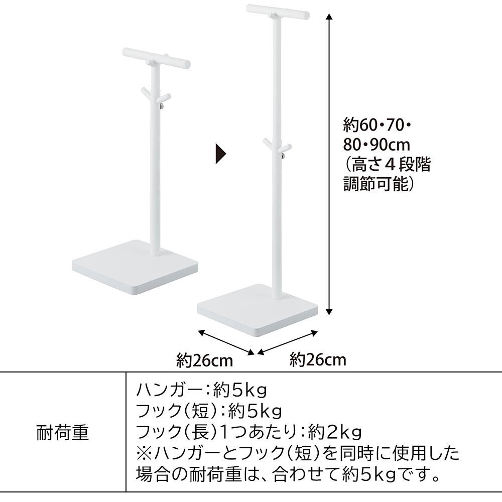 ※ハンガーとフック(短)を同時に使用した場合の耐荷重は、合わせて約5kgです。(例:ハンガーで約4kg分使用時は、フック短は約1kgまで使用可)