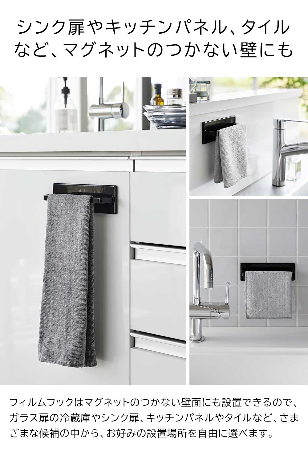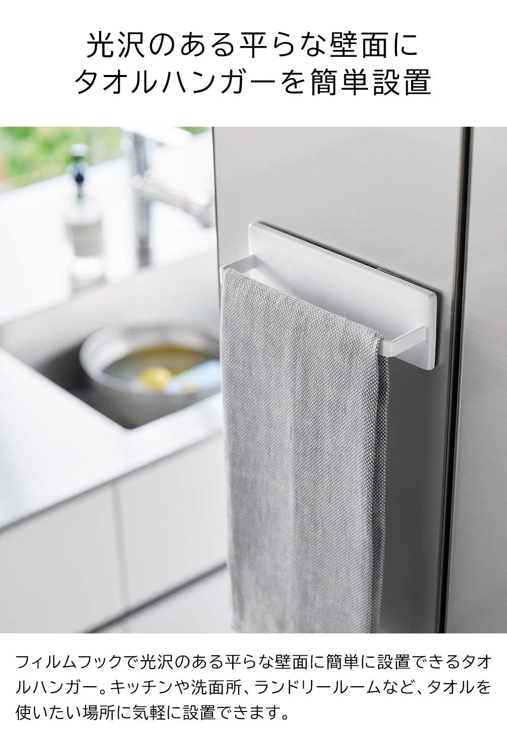 フィルムフックキッチンタオルハンガー タワー 山崎実業 tower ホワイト ブラック 2161 2162 yamazaki タワーシリーズ