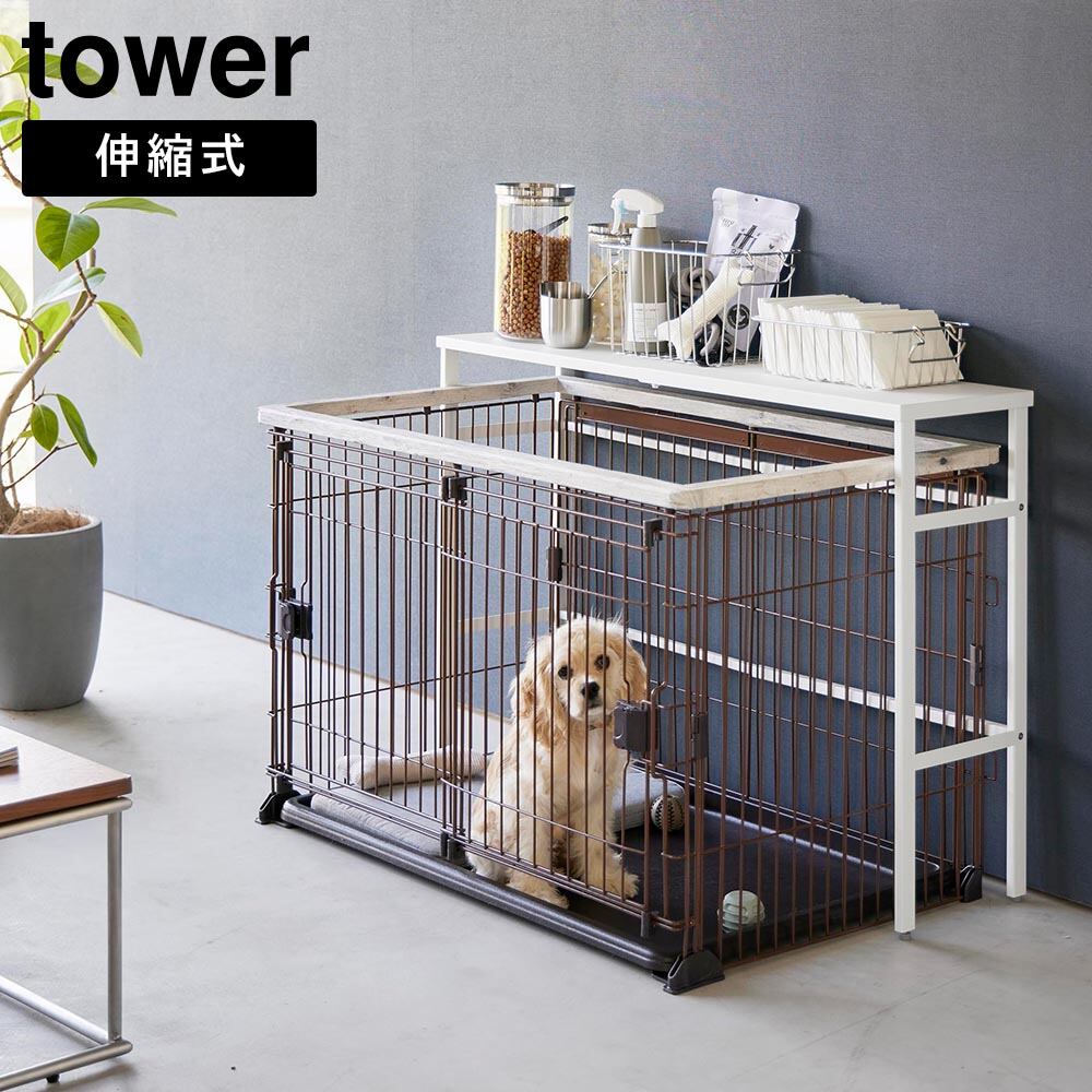 【山崎実業 tower】伸縮ペットケージ上ラック/ペット/収納/タワーシリーズ/yamazaki/ホワイト4086/ブラック4087_1
