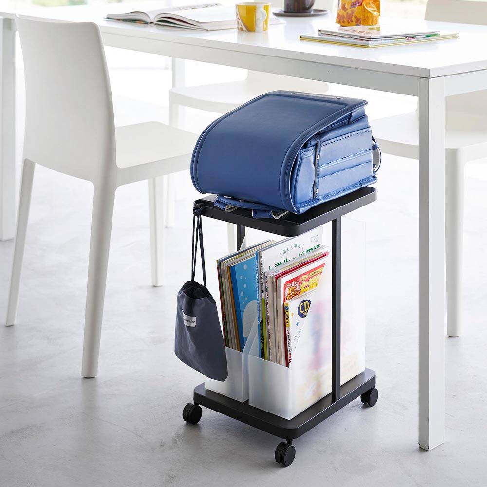 【山崎実業 tower】ランドセル収納ラック/キャスター付き 2段/絵具セット/習字道具/バッグ/かばん/荷物置き/タワーシリーズ/yamazaki/ホワイト1747/ブラック1748