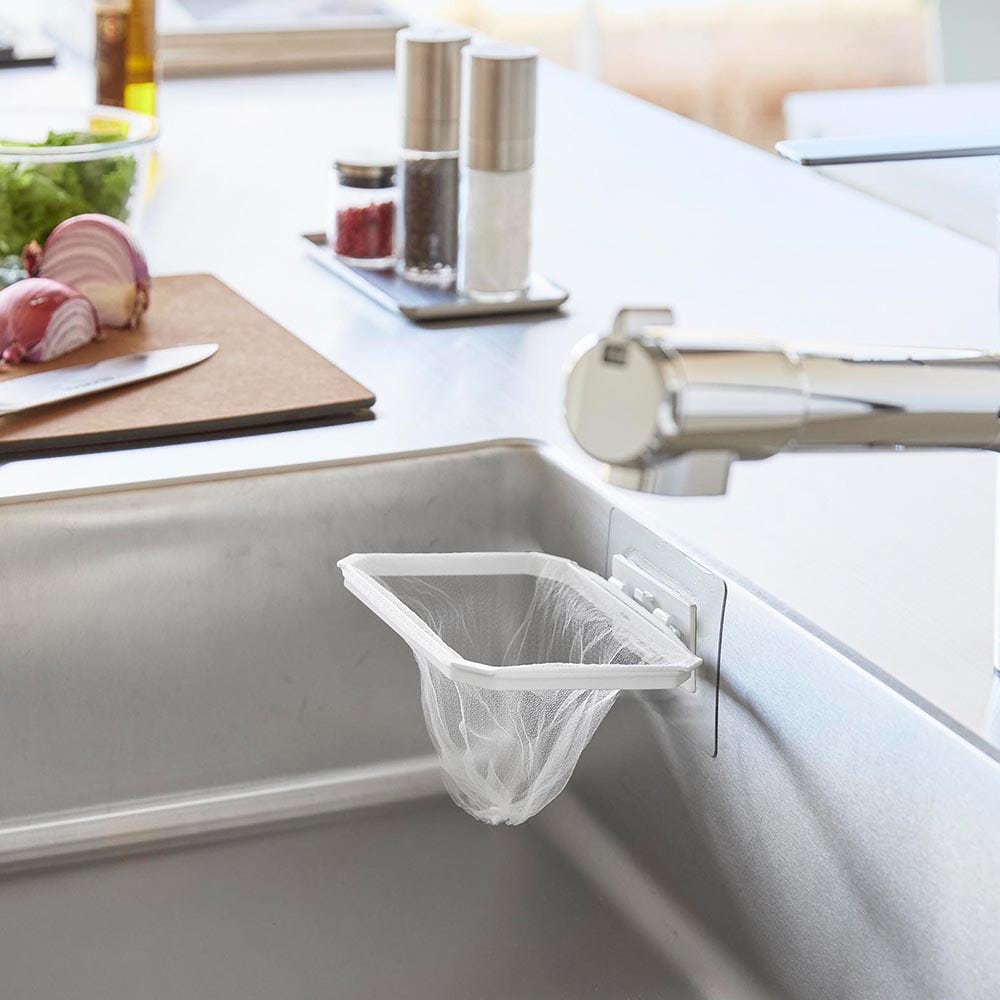 フィルムフック折りたためる水切りネットホルダー タワー 山崎実業 tower ホワイト ブラック 1566 1567