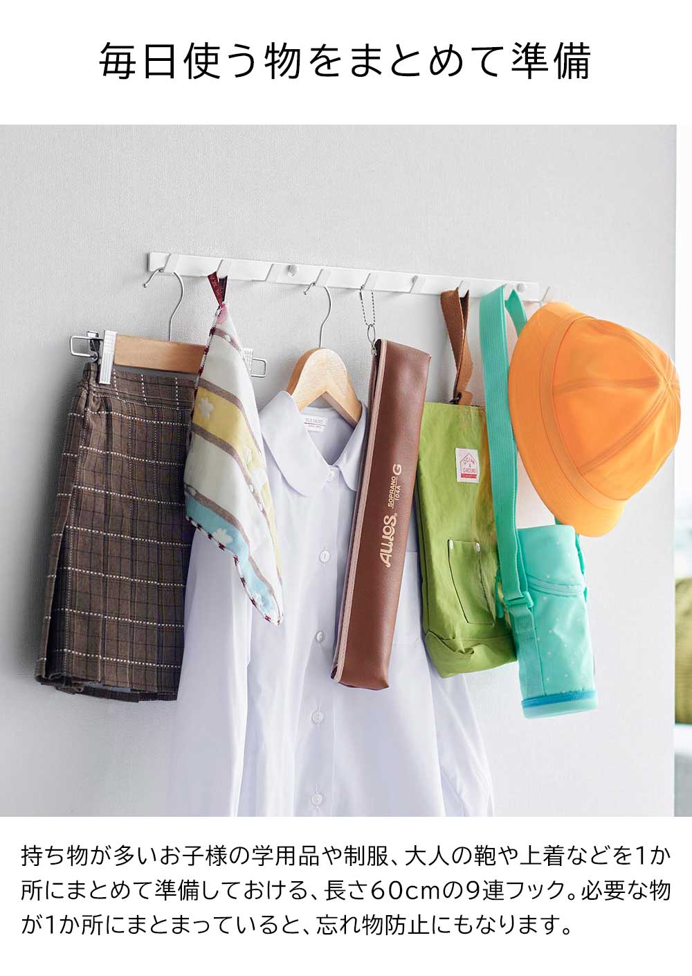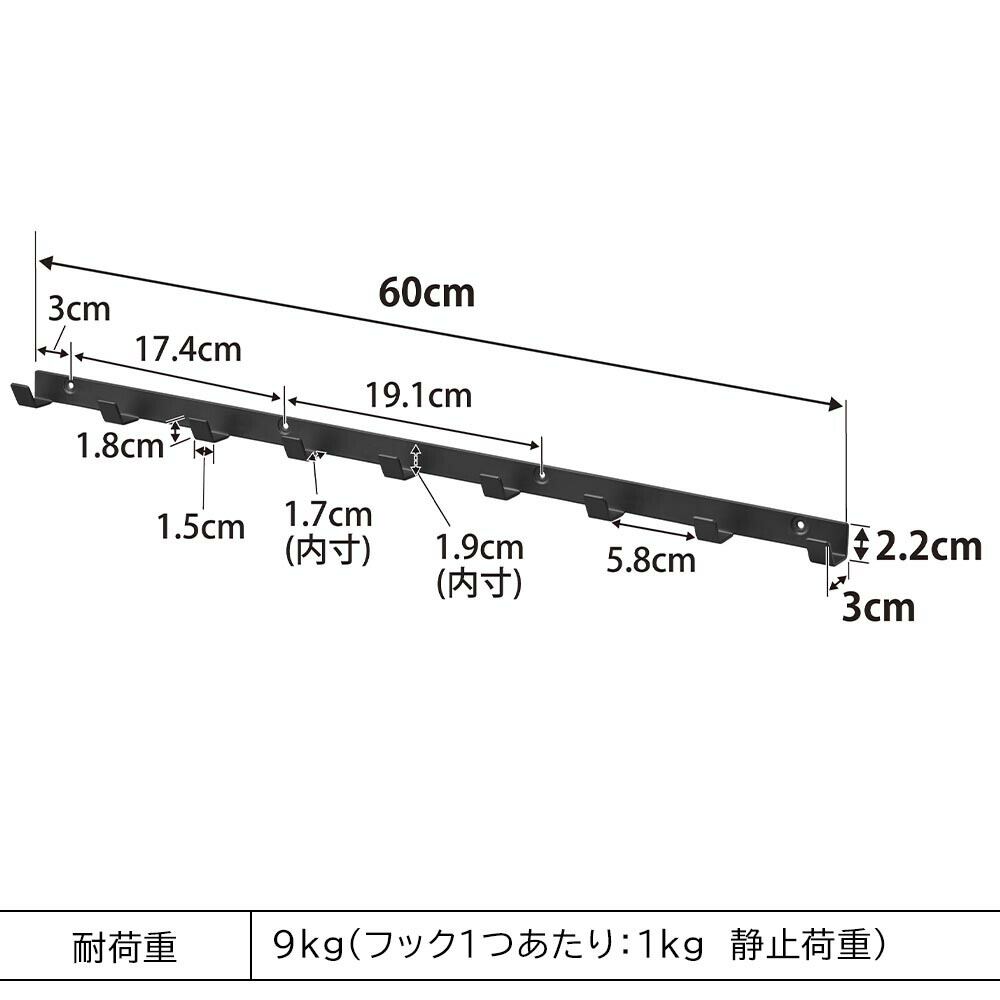 ウォールフック スマート 石こうボード壁対応 W60 山崎実業 smart 幅60cm ホワイト ブラック 1570 1571 ウォールハンガー 壁掛けハンガー 9連 yamazaki