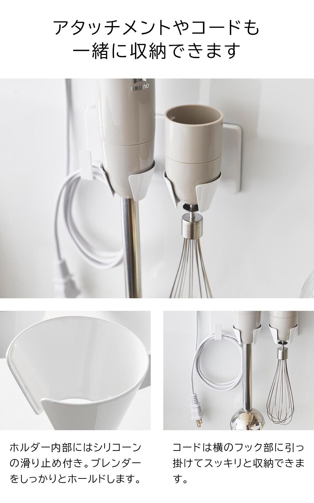 フィルムフックハンドブレンダーホルダー タワー 山崎実業 tower ホワイト ブラック 1610 1611 ハンディブレンダー 収納 ハンドミキサー 壁面収納 浮かせる収納 yamazaki タワーシリーズ