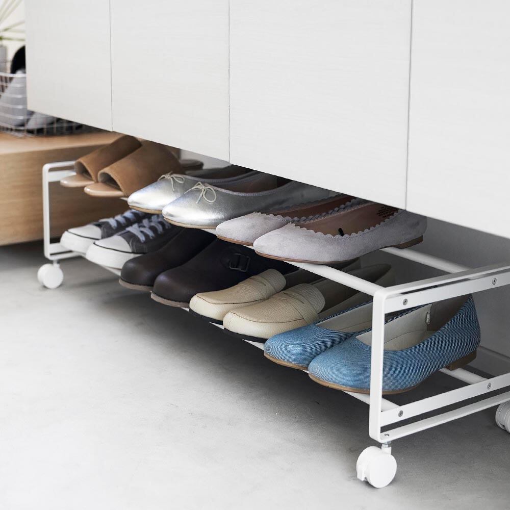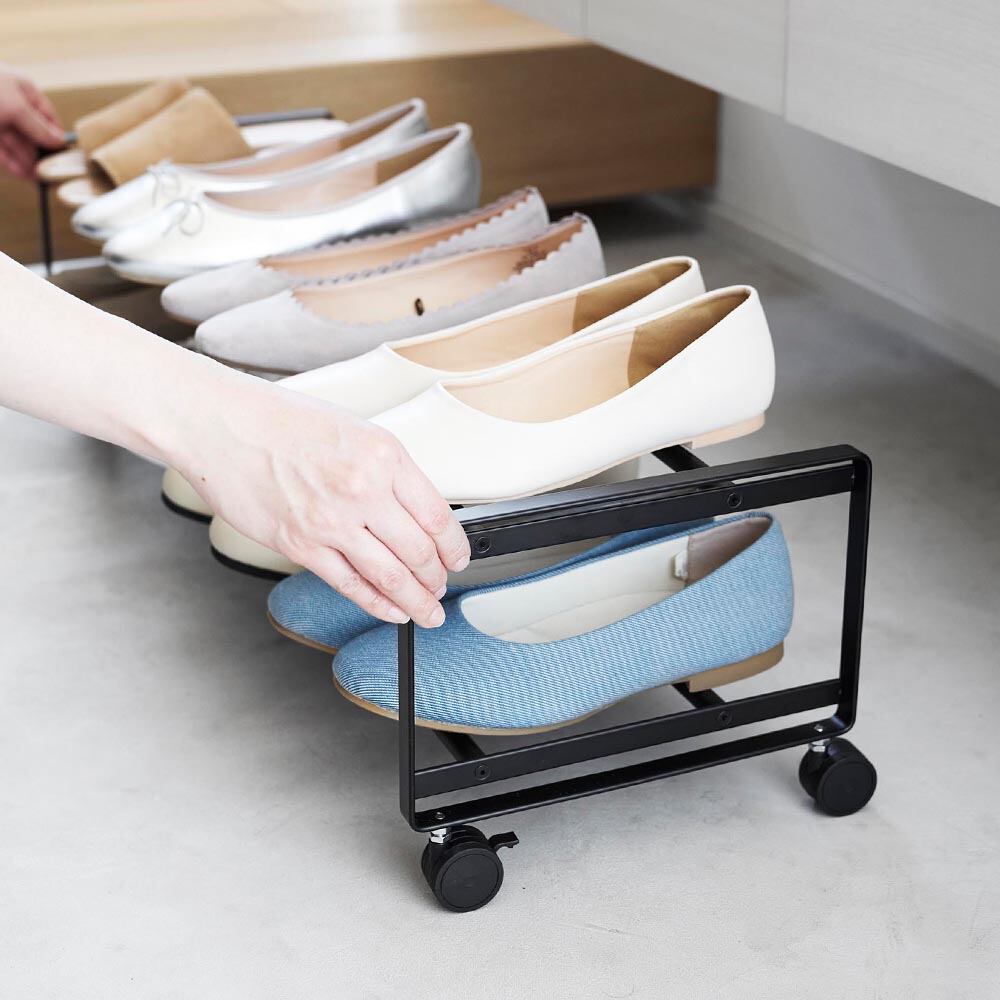 引き出せるキャスター付きシューズラック タワー 2段 山崎実業 tower ホワイト ブラック 1624 1625