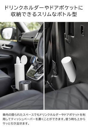 ボトル型蓋付きティッシュケース タワー 山崎実業 tower ホワイト ブラック 1828 1829 ティッシュペーパー 車内 ドリンクホルダー タワーシリーズ yamazaki