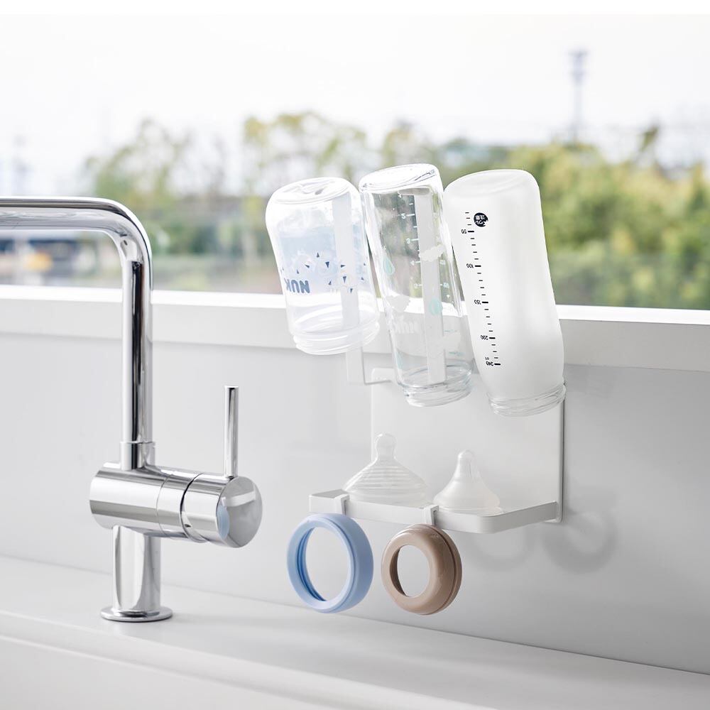 マグネットボトルホルダー&トレー プレート 山崎実業 plate ホワイト 1659 水筒 スタンド 水切り ラック マグボトル ホルダー 哺乳瓶 乾燥 yamazaki