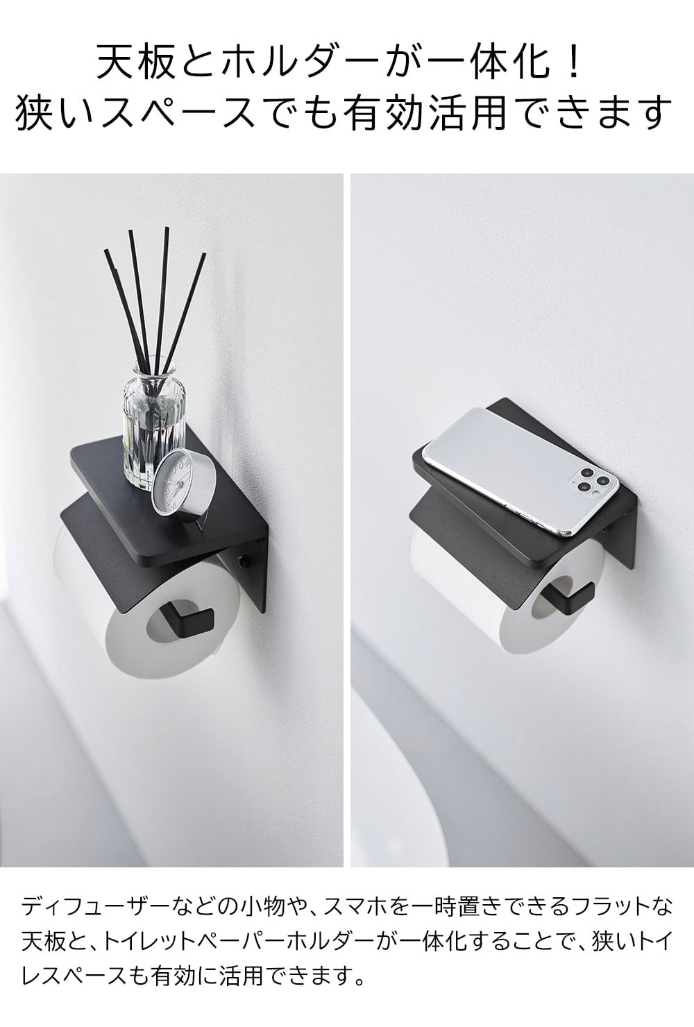 ウォールトイレットペーパーホルダー タワー 石こうボード壁対応 山崎実業 tower シングル 1連 ホワイト ブラック 1297 1298 タワーシリーズ yamazaki