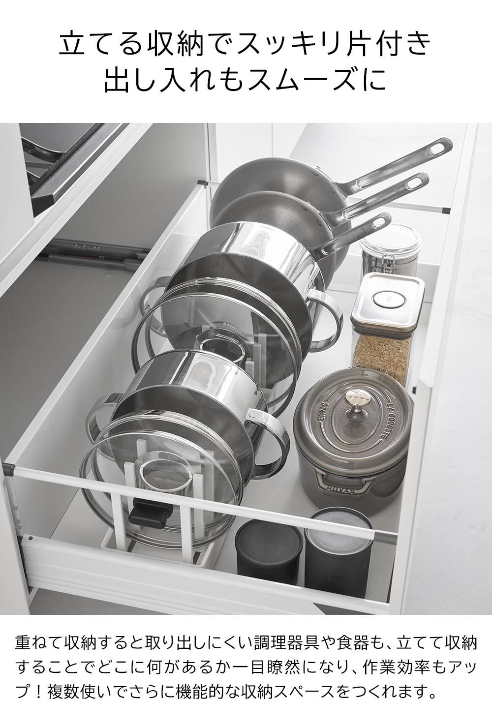 シンク下幅調節鍋蓋&フライパン収納スタンド タワー W40
