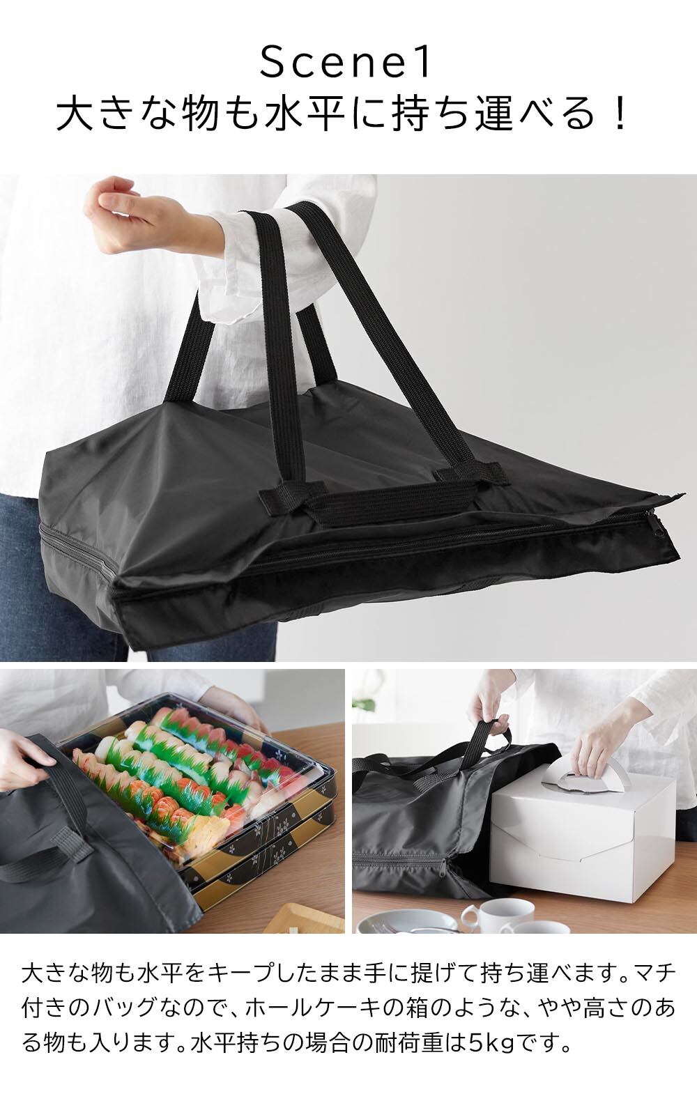 洗える持ち帰り寿司・ピザが入るレジかごかばん タワー 山崎実業 tower ライトグレー ブラック 2125 2126 エコバッグ 大容量 折り畳み 3WAY yamazaki タワーシリーズ