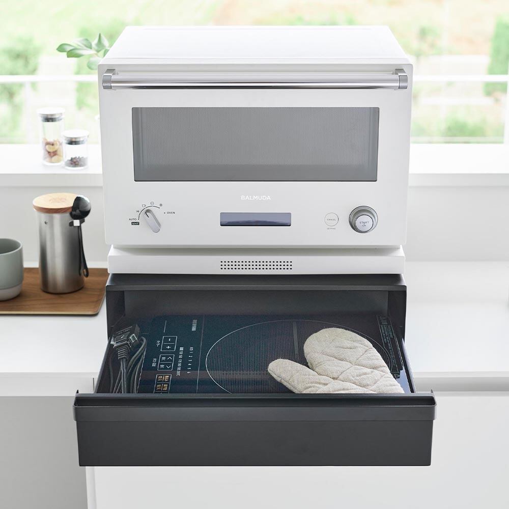 カセットコンロが入る家電下ラック タワー 1段 山崎実業 tower ホワイト ブラック 10197 10198 卓上IHコンロ 収納ラック タワーシリーズ yamazaki