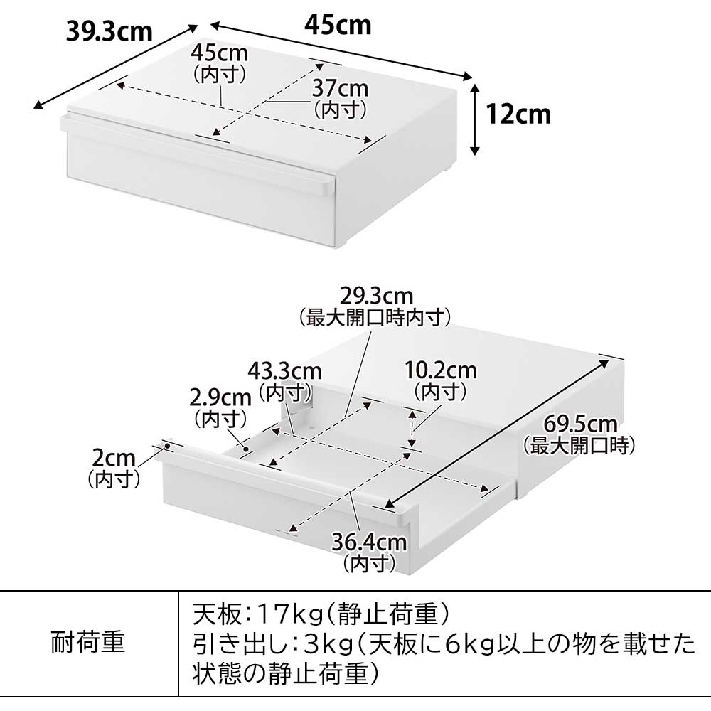 引き出し:W43.3×D36.4×H10.2cm(最大開口時:D29.3cm)