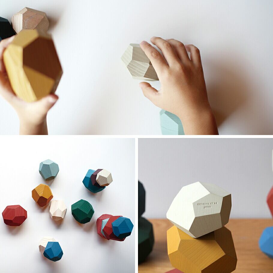 バランスと創造的感覚を養うための多面体の木製のブロック。積み上げたり、並べたり、飾ったり、使い手の想像を刺激するオブジェクトです。職人の手によって、ひとつひとつ異なるサイズ・形状に面取りし、一つのオブジェクトとしても整うように製作しています。加工から検品、パッケージングに至るまで奈良県内で行っています。