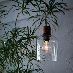 シンプルなフォルムとタモ材とのコンビネーションがどんな場所にも合わせやすいガラスペンダント。厚なガラスと柔らかいフォルムがアンバランスなところもおすすめです。