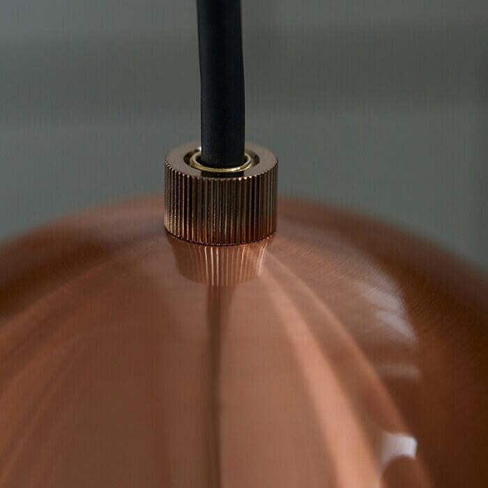 半円が上下に組み合わさったペンダントライト。アルミとガラスのコンビネーションでシーンを選ばずご使用可能です。