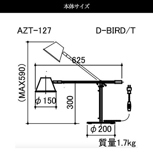 W 625 D 200 MAXH 590 mm(コード長:1700 mm)
