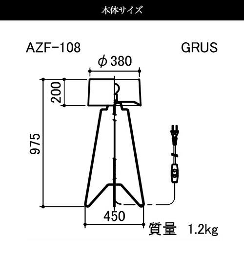 【日本製】APROZ アプロス:GRUS(ファブリックフロアライト1灯)グルス/照明/間接照明/ライト/フロアライト/スタンドライト/インテリア/置型照明/リビング/ダイニング/AZF-108-AB