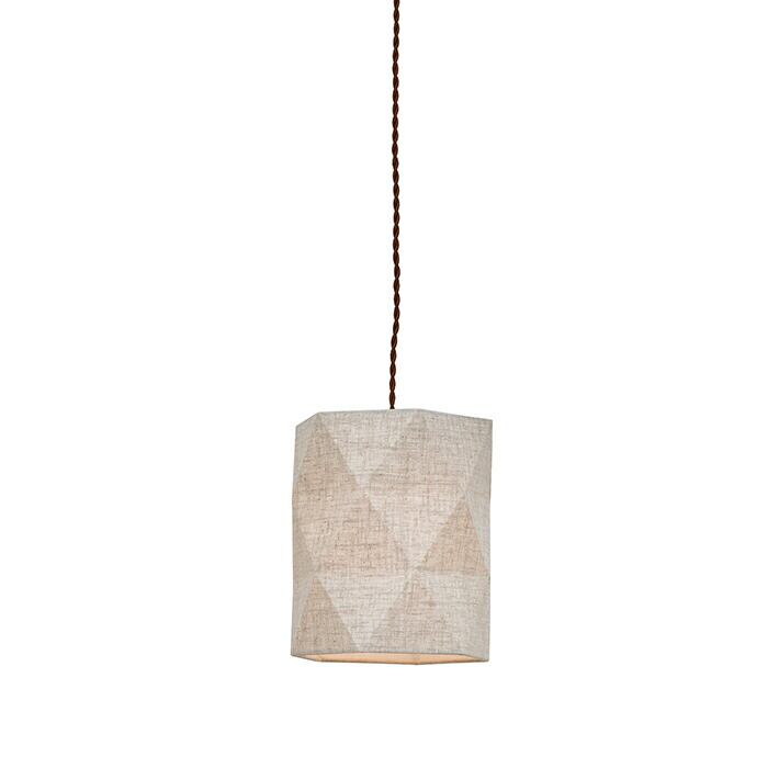 麻混生地を三角形に折りながら山折りと谷折りを繰り返し、立体的に仕上げたペンダントライト。光のたまる場所とたまらない場所とのコントラストが特徴的です。