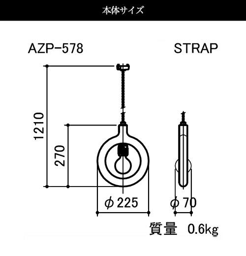 W 225 D 70 H 270 mm(1210 mm:コードの長さ調節可能)