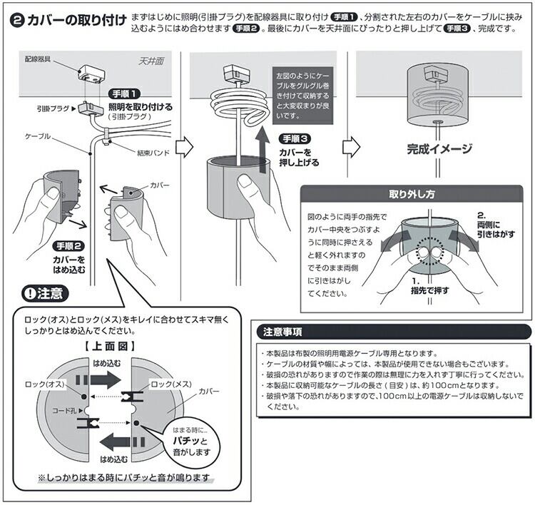 ※布製のケーブル専用となります。チェーン付きの照明には取り付けできません。※ケーブルの材質や太さによっては使用できない場合がございます。