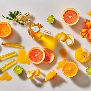 シトラスのベースにグレープフルーツ、イタリアンレモン、ライムオイル、レモンゼスト(小片)のトップノートが合わさり、メインノートのオレンジオイル、マンダリン、イランイラン、ホワイトリリィがふくよかに香ります。
