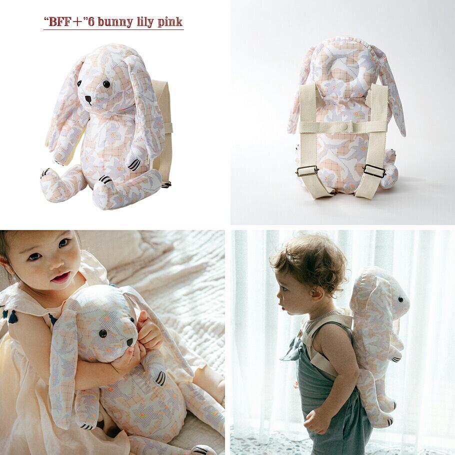 お子様の「Best Friend Forever(ずっと友達)」になれるよう、おやすみからお出かけまで寄り添うウサギとクマの多機能ぬいぐるみリュック。ずっと一緒にいたくなるような優しい手触りで、ベビーからキッズまで使えて子育てシーンにも役立つ機能付きです。