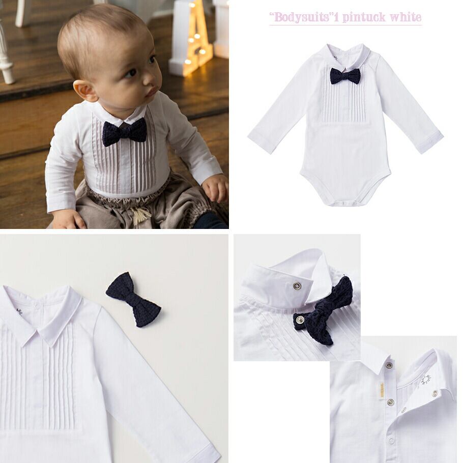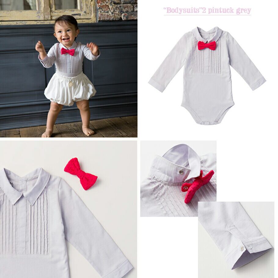 ピンタック×蝶ネクタイでフォーマルにふさわしいシャツタイプと、可憐な花びらを思わせる付け襟がセットになったブラウスタイプの2種類をご用意。マールマールのブルマと合わせるだけで、王子様・王女様のようなコーディネートが完成します!