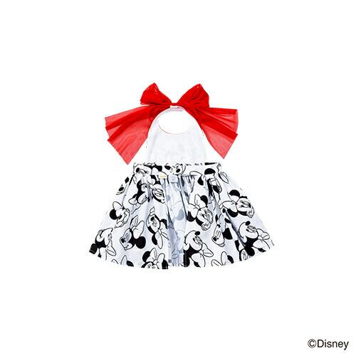 【色/柄】ミニーのチャーミングな表情が魅力の柄は、モノトーンで甘くなりすぎずに着られます。赤いリボンがアクセントになり、後ろ姿までキュート。