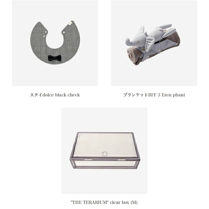 日常から特別な日まで、ベビーに寄り添うギフトセット。ぞうのぬいぐるみが付いたブランケットと、モノトーンのシックなスタイでとびきりの「おめでとう」を。
