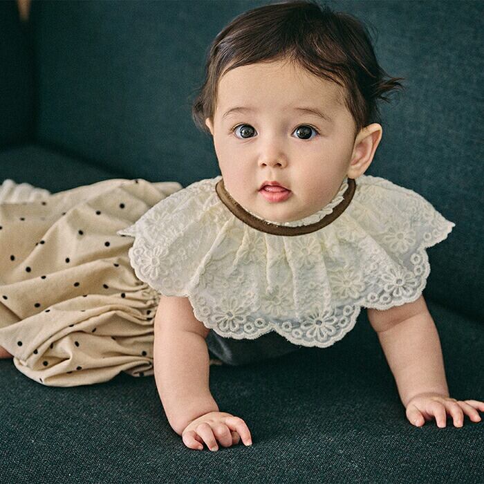 【コーデ】スタイとしてはもちろん、オケージョンシーンの付け襟としても。身に纏うだけでドレスアップし、ベビー期を長く彩ります。