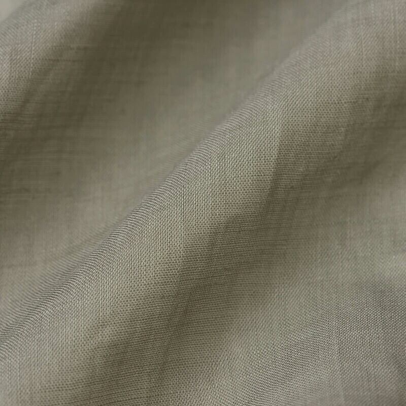長袖タイプの、ロングシャツデザインのお食事エプロンです。シックなカラーリングとモダンな印象のドロップショルダーに、やわらかくもシャリ感のある麻ならではの着心地も魅力。生地全体に撥水加工を施し、ひざが隠れるデザインで汚れを気にせずお食事を楽しめます。後ろ襟ぐりのスナップボタンで着脱もノンストレスです。少しグレイッシュなカラーリングは、白シャツとはまた違ったよそ行きの表情を見せてくれます。