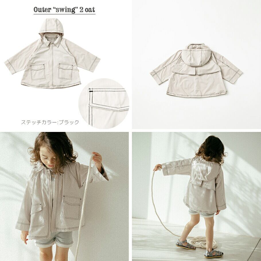 太陽が隠れたとき、小雨がぱらついたとき、風が強まったとき。成長と気候に幅広く対応する「持っていて良かった」薄手のアウター。Aラインシルエットでフードは着脱可能。コーディネートや季節や雰囲気に合わせてシルエットの変化を楽しめます。ステッチのディティールがリズミカルなアクセントに。 袖は2段階で折り上げることで、20cmの成長に対応しています。小さい頃はコート丈、大きくなったらハーフコート丈に。成長に合わせて着こなしの変化も楽しめます。