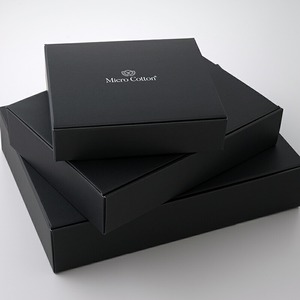 専用ギフトボックスはシックなダークグレーをベースにホワイトのロゴ入り。年齢を問わず幅広い層の方に喜ばれるデザインです。